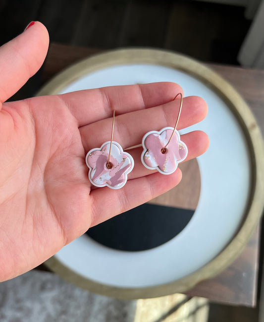 Daisy Flower Hoops - White & Pink Marble
