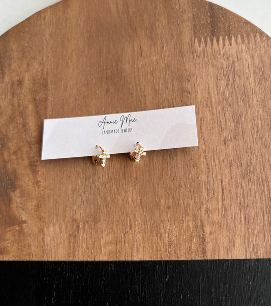 Gold Cross Huggie Hoops