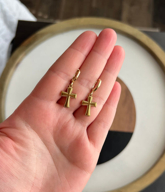 Gold Cross Huggie Hoops