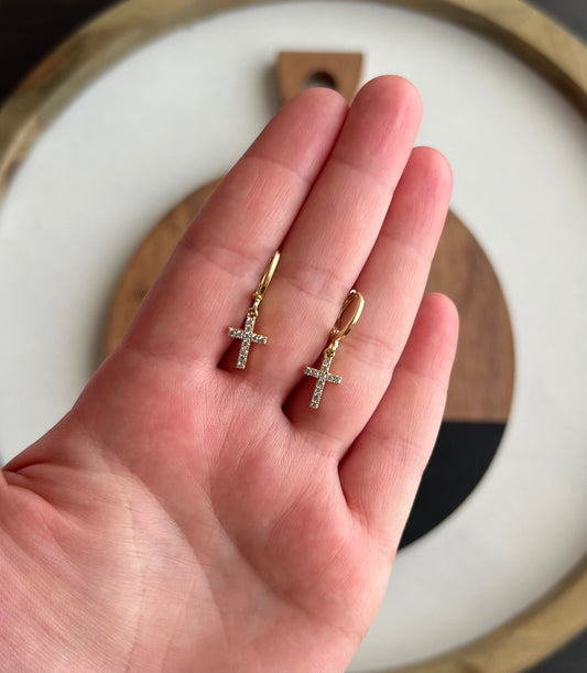 Gold Crystal Cross Huggies