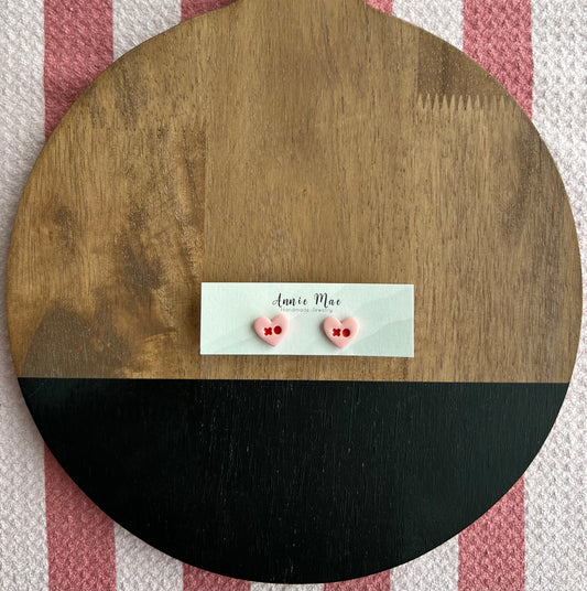XO Pink Heart Studs
