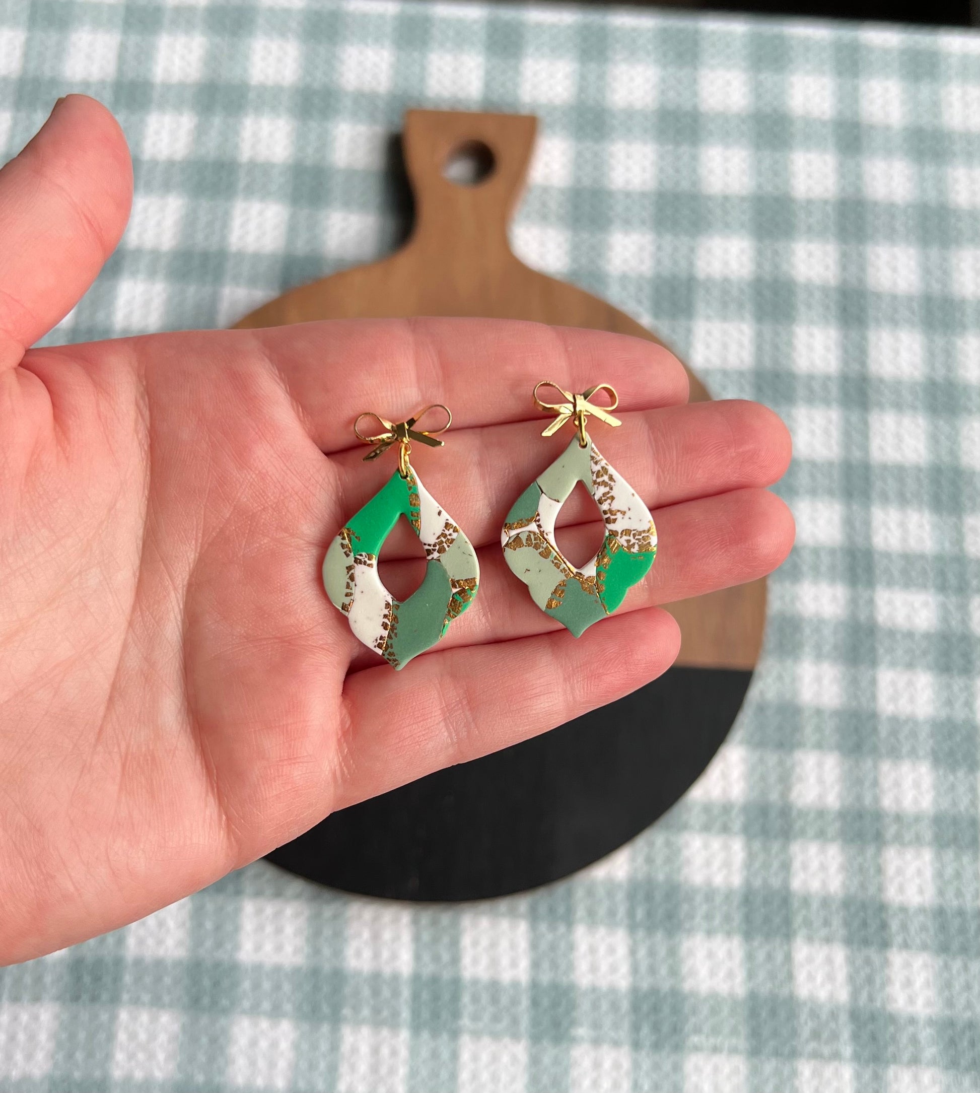 Handmade polymer clay earrings. They are very light weight and comfortable to wear.