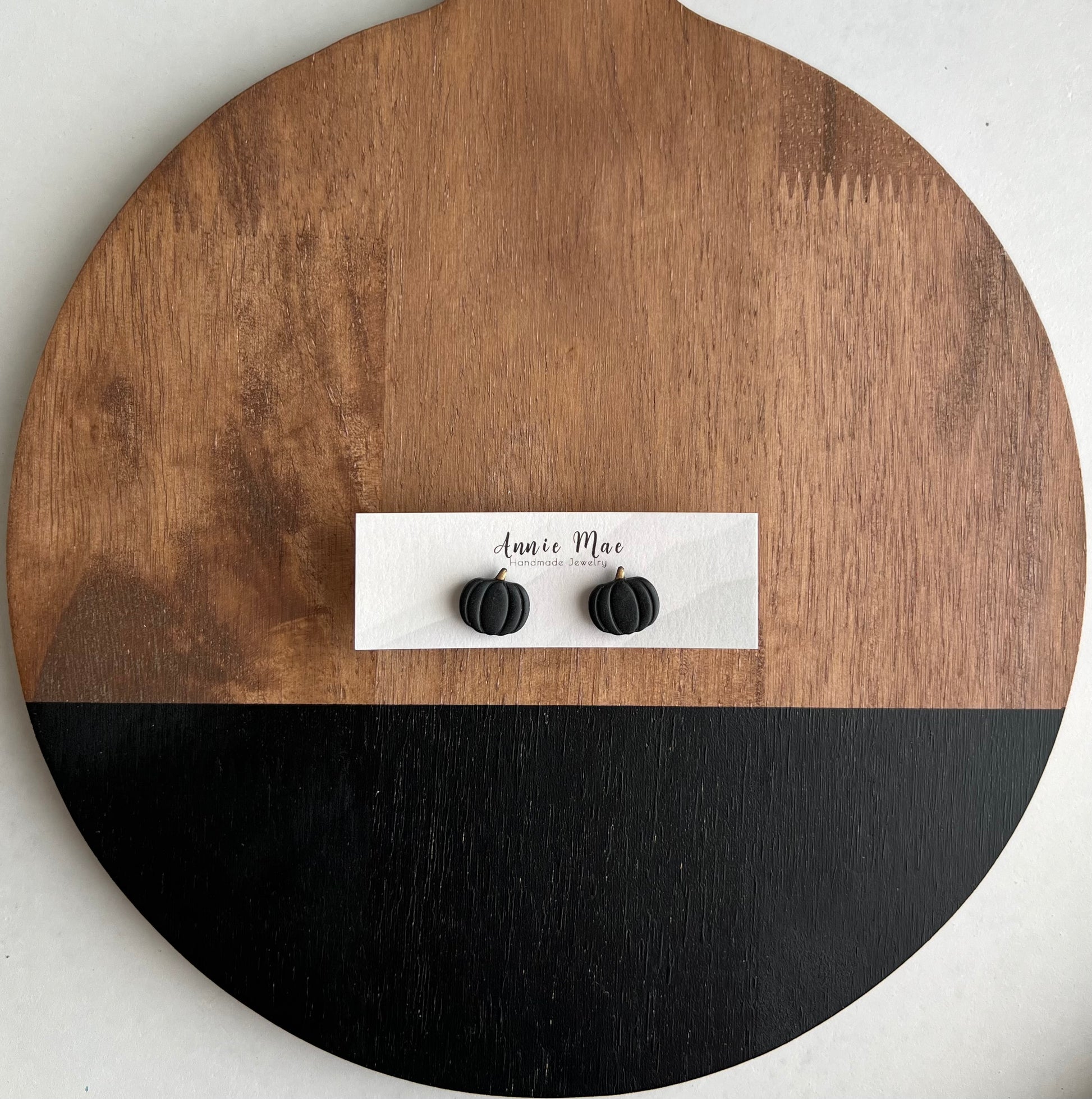 Black pumpkin studs with a gold stem. These can also be made in any color, please contact me before ordering if you want a different color.