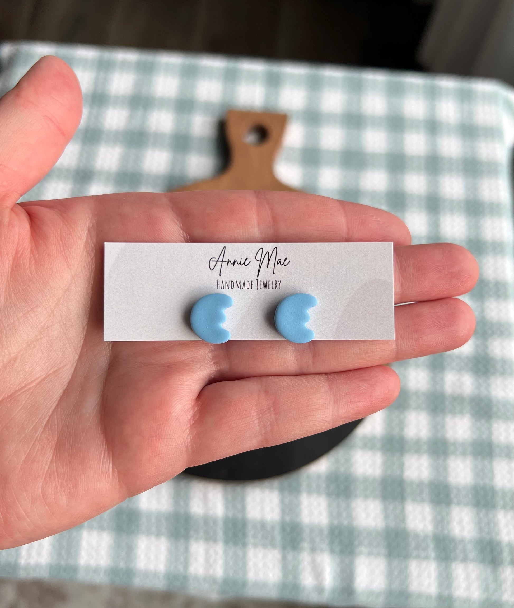 Handmade polymer clay earrings. They are very light weight and comfortable to wear. Posts are secured with resin to give strength and durability.