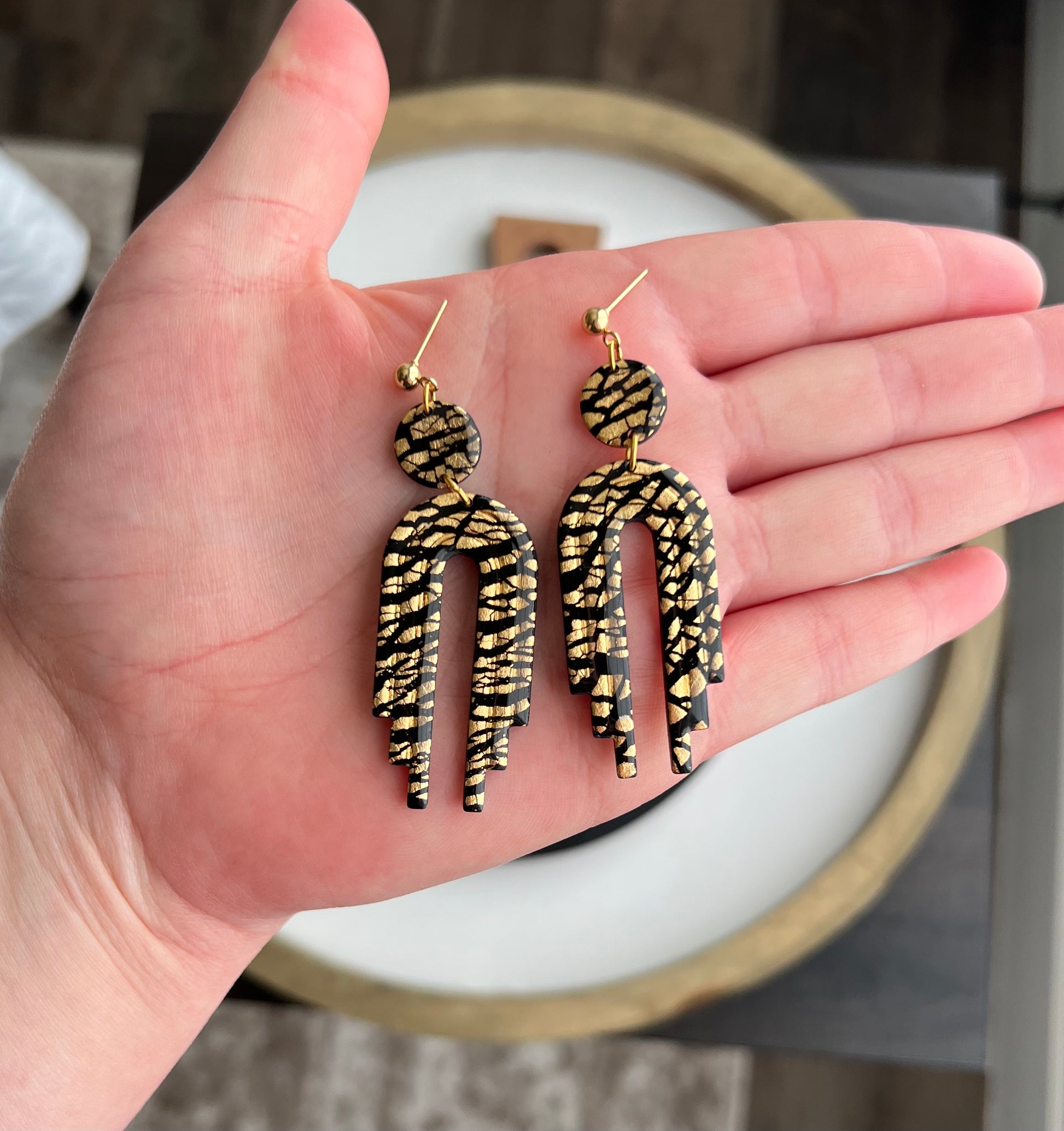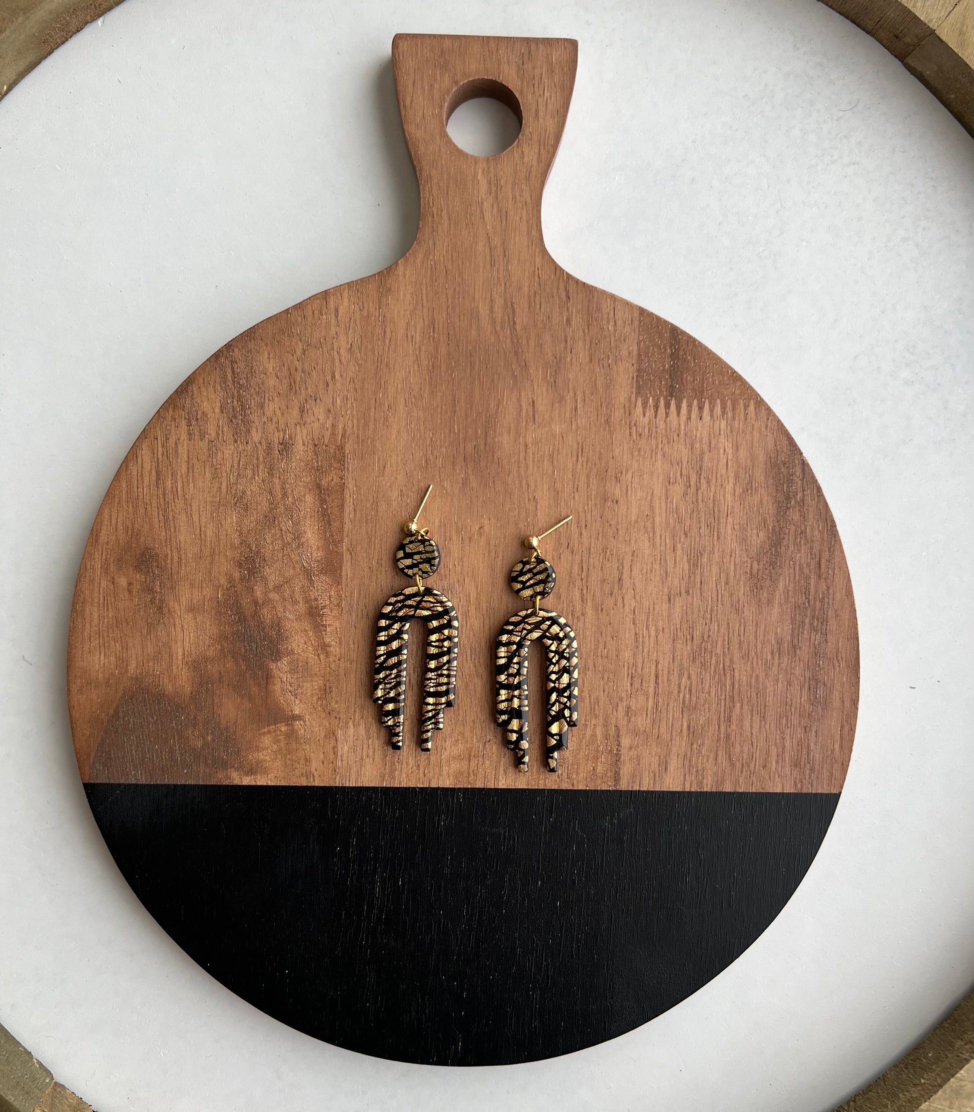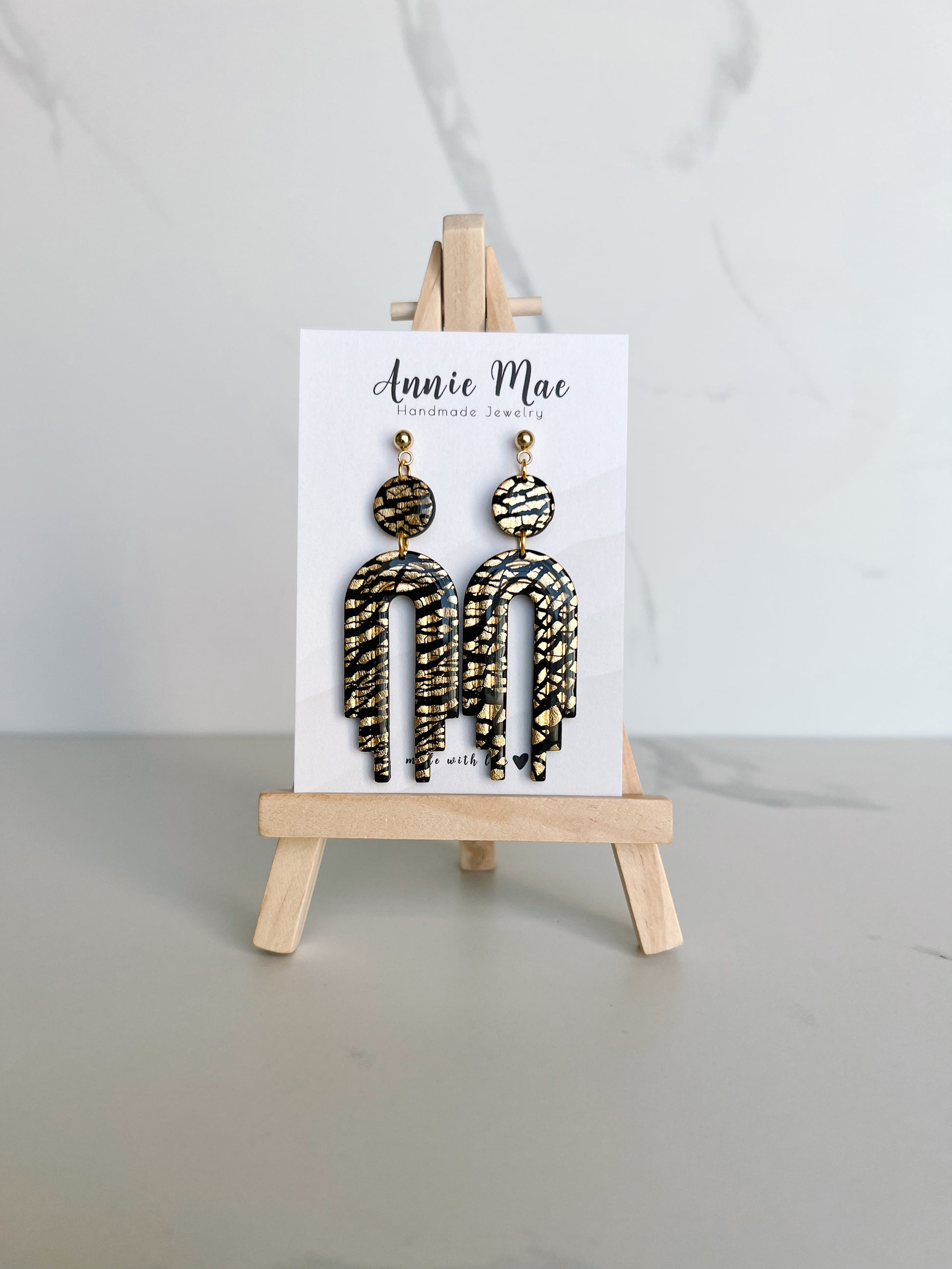 A pretty black and gold foil embossed arches sealed in resin so they are really shiny!