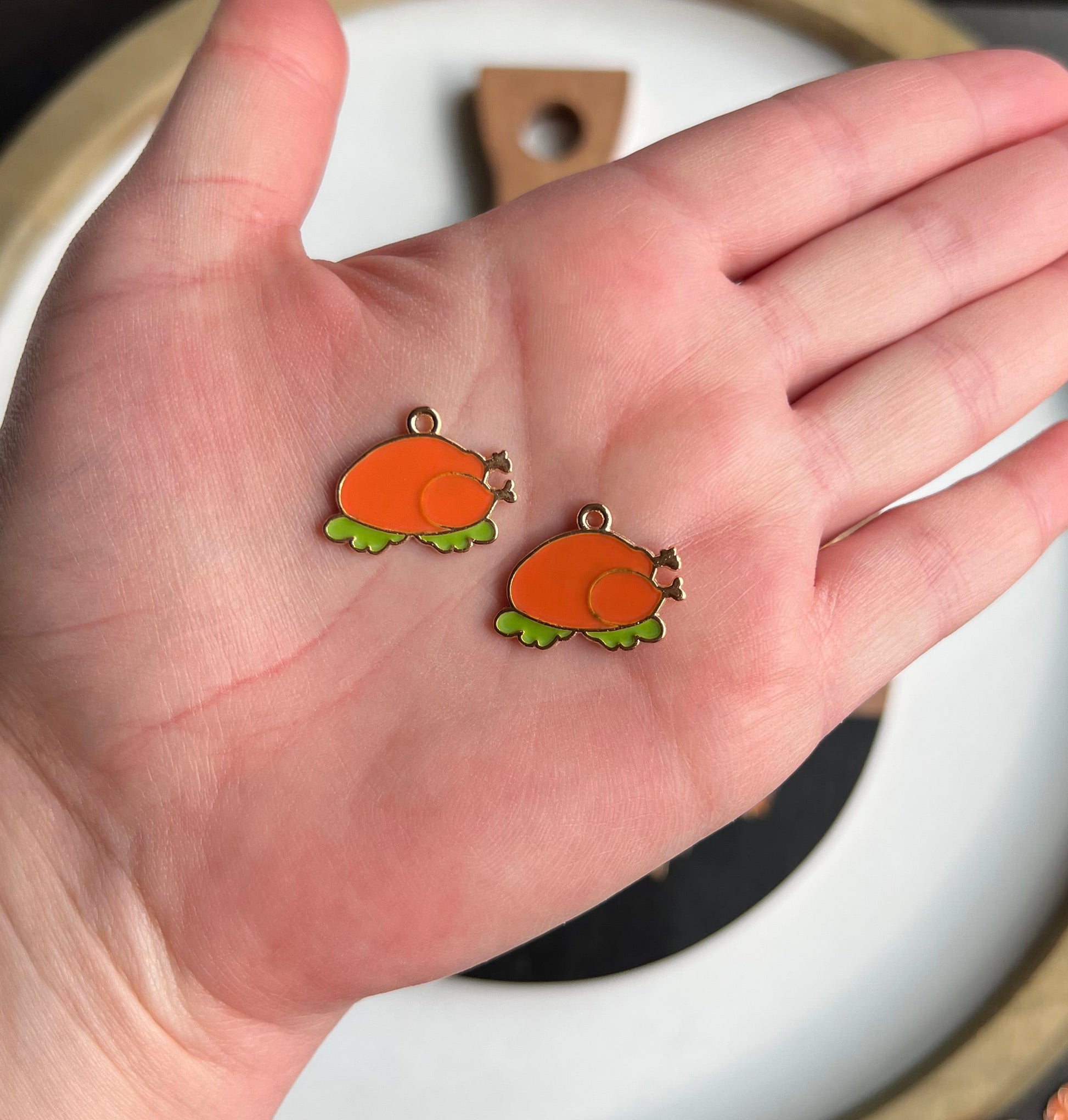 Multiple different styles of turkey charms. Each pair is on a gold huggie hoop. (Or you can choose ball posts, or fish hooks) There is only 1 of each style (a couple of them have 2 pairs available)