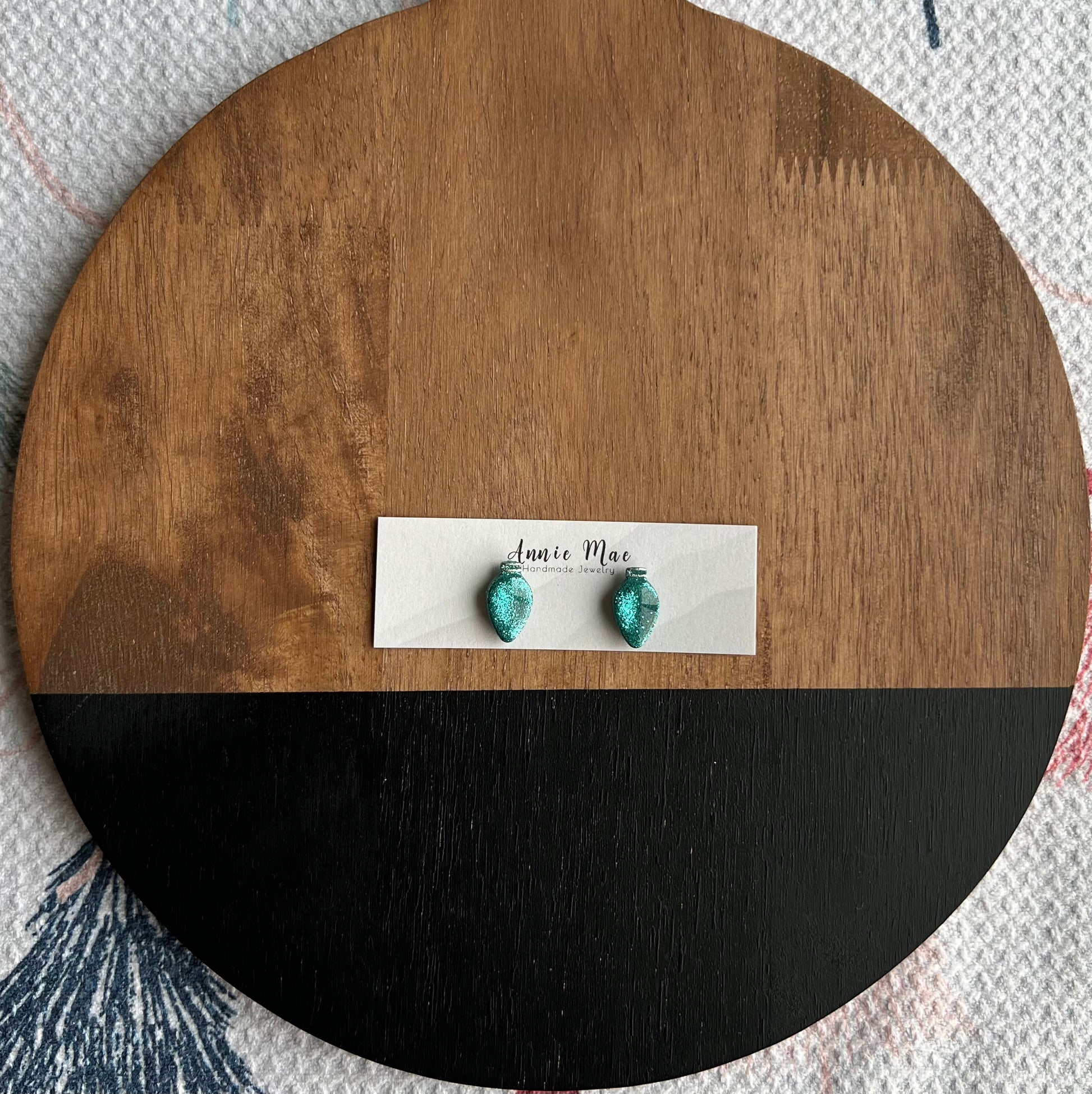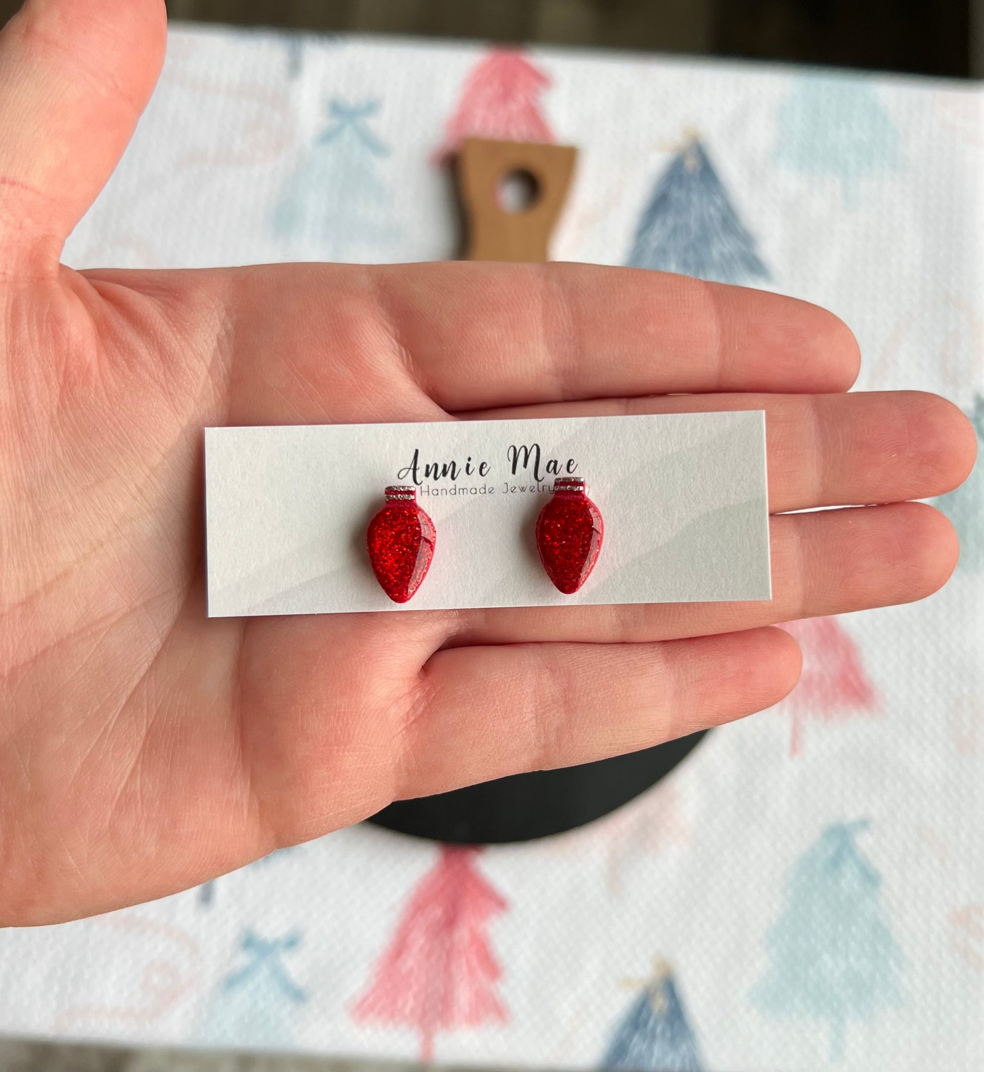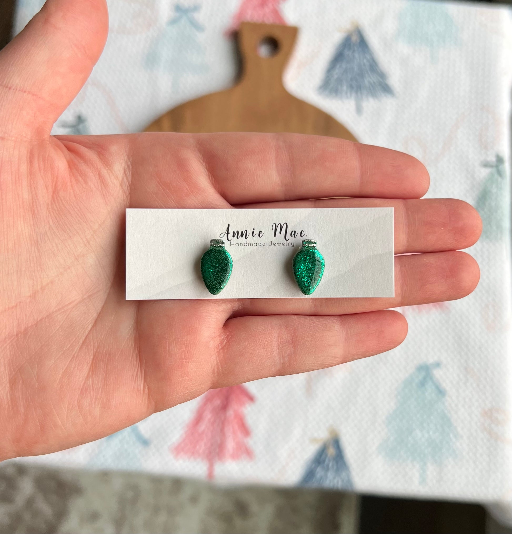 7 different christmas glitter light bulb stud options! Silver threads and resin for shine.