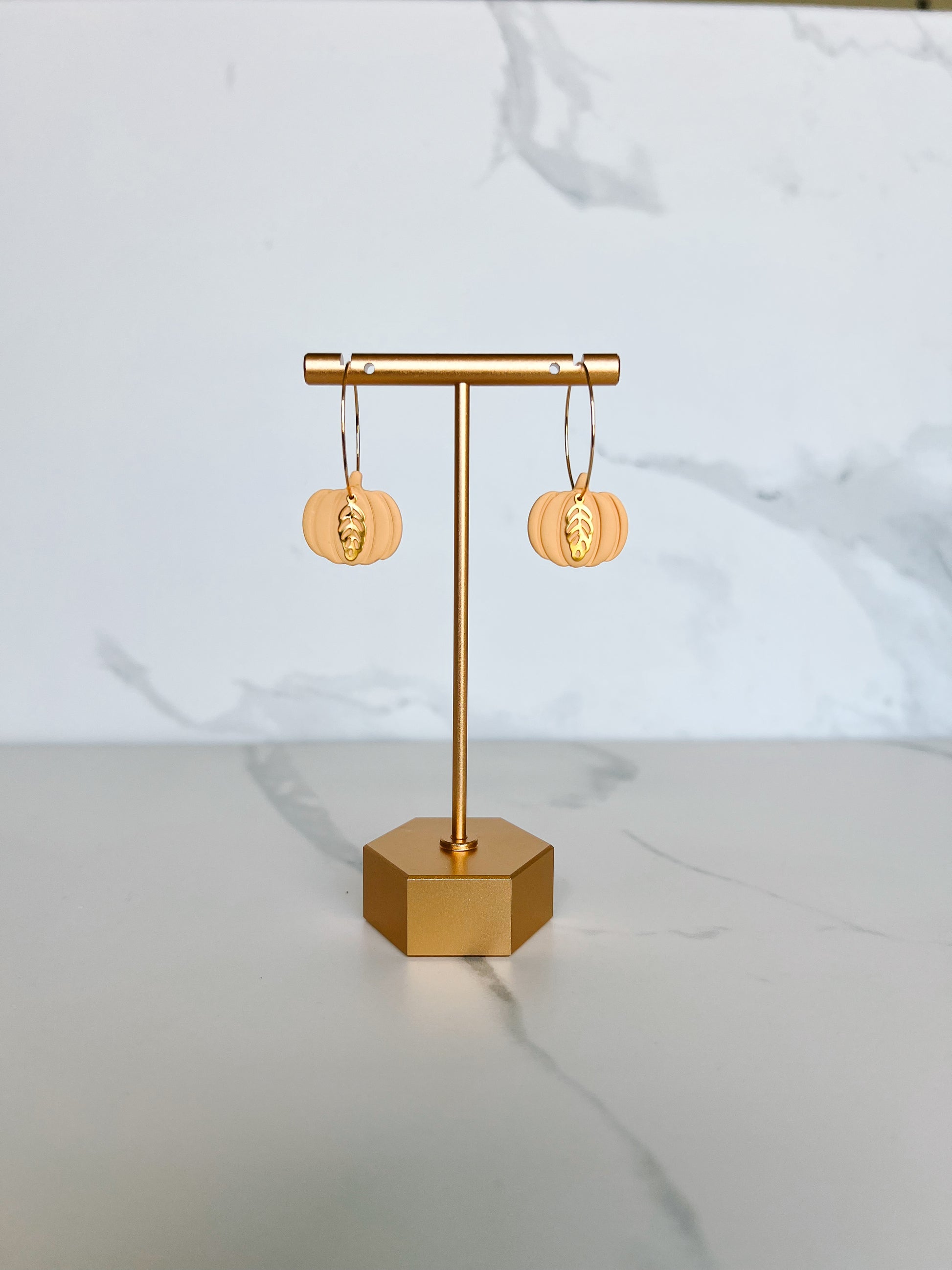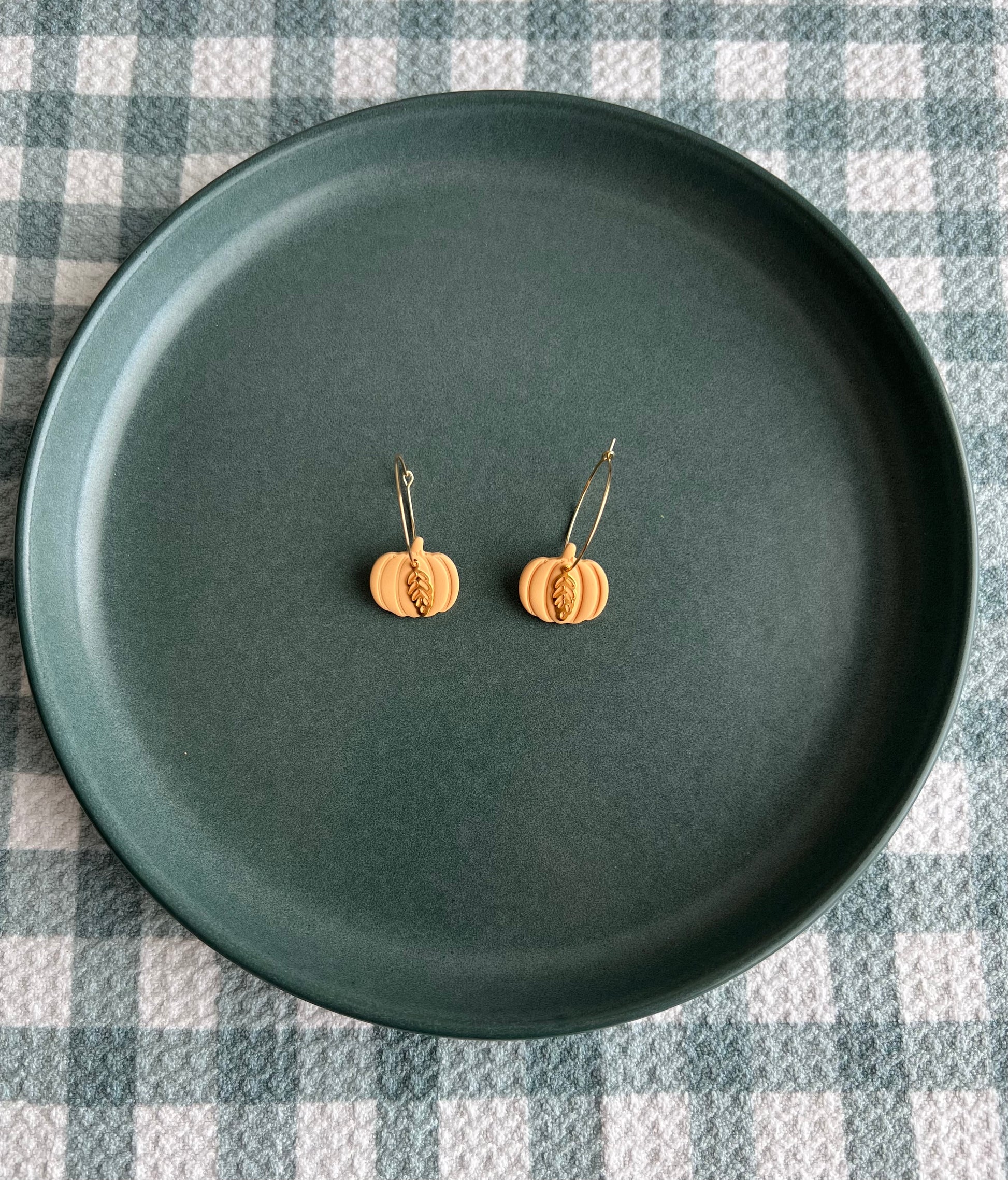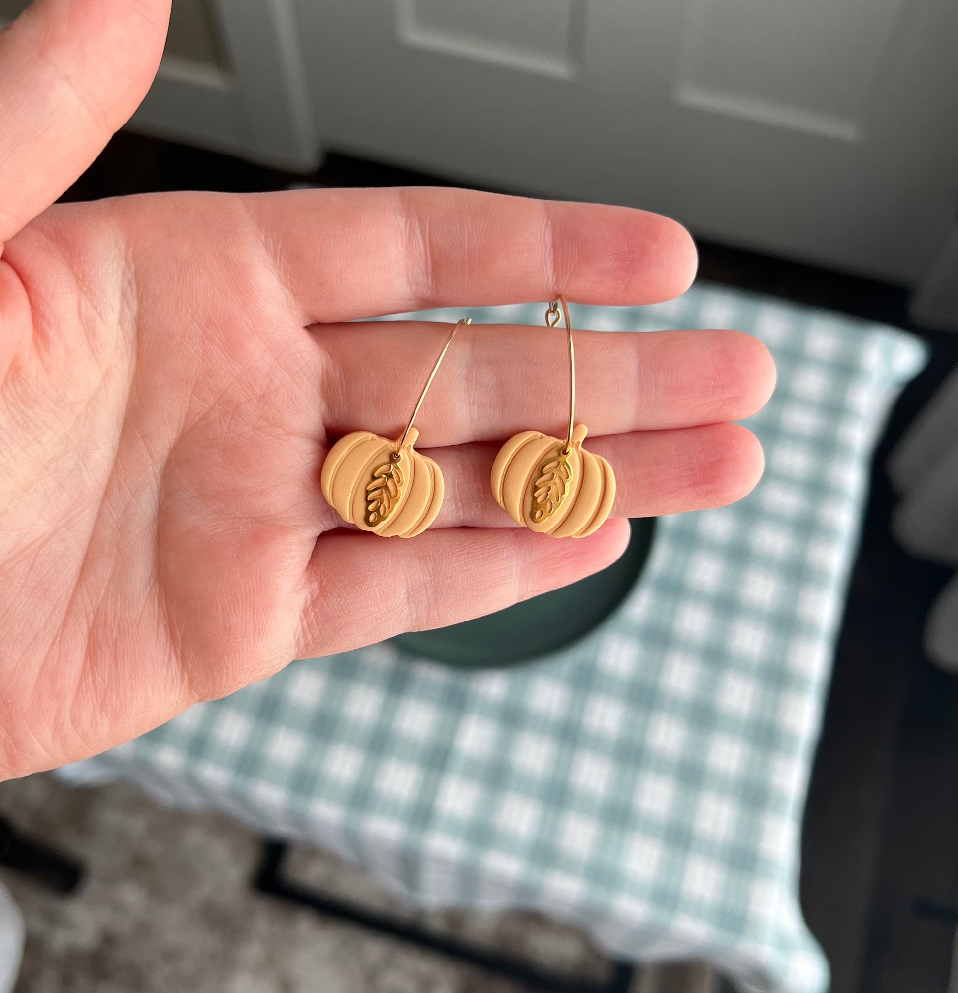 Perfect sized embossed pumpkins with a cute gold leaf charm hanging on a hoop. These can also be made in silver and with any color clay. Please contact me first if you want a different color before ordering